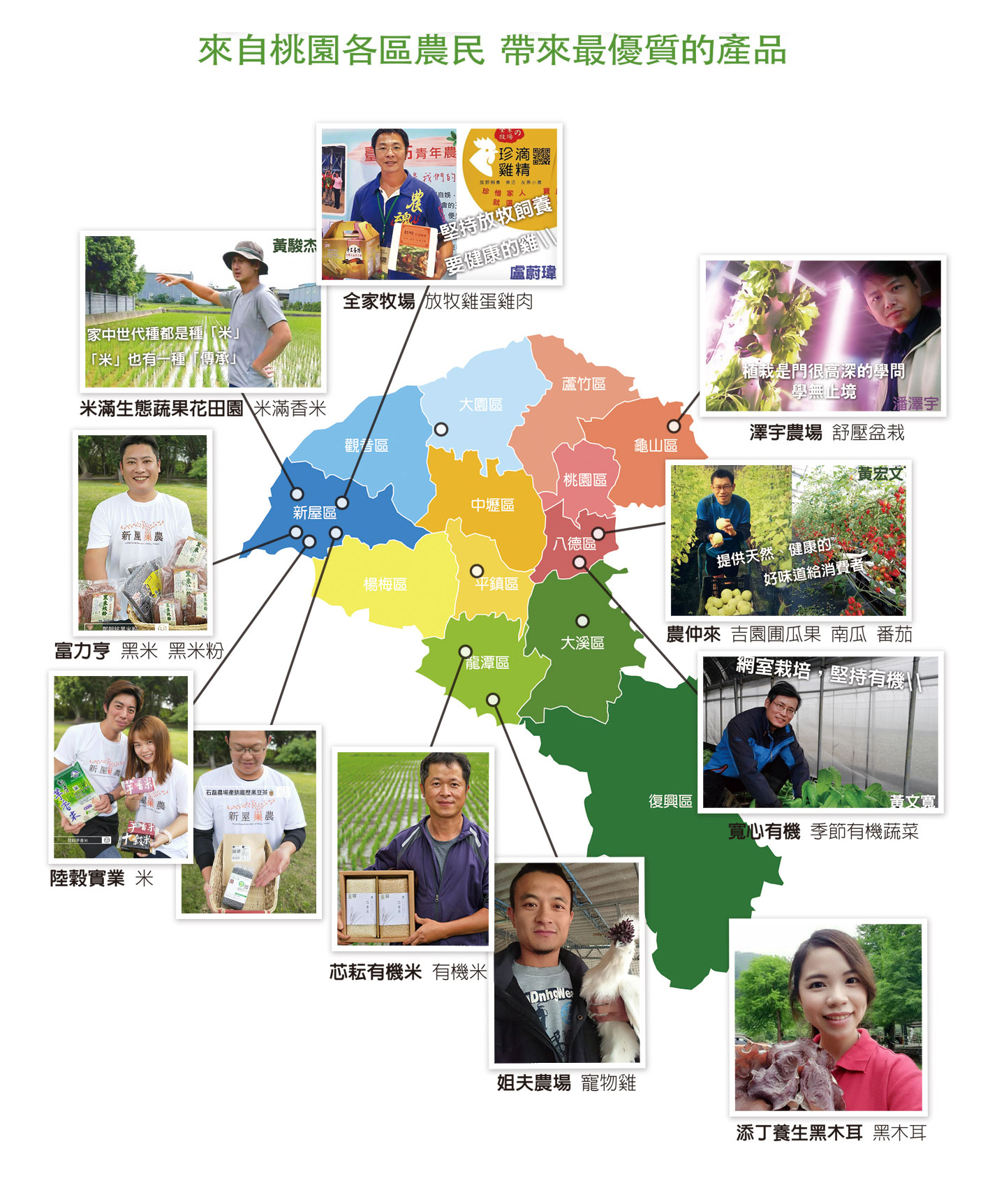在桃園各處的青農,所經營的農場,產出特色農產品,觀迎大家一同來了解並選購!